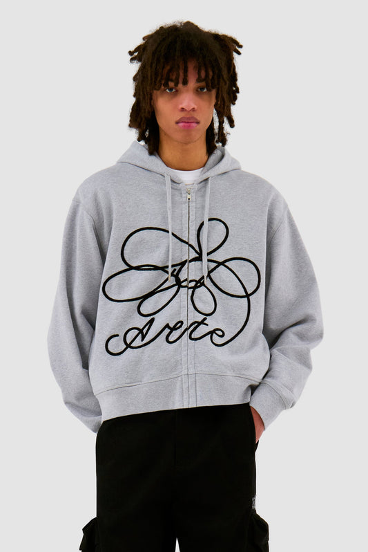 Sweat à capuche zippé avec logo fleuri - Gris